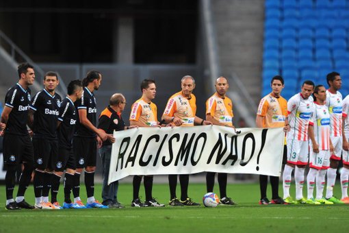 com os dizeres: “Racismo Não!” em referência ao ato de racismo praticado pela